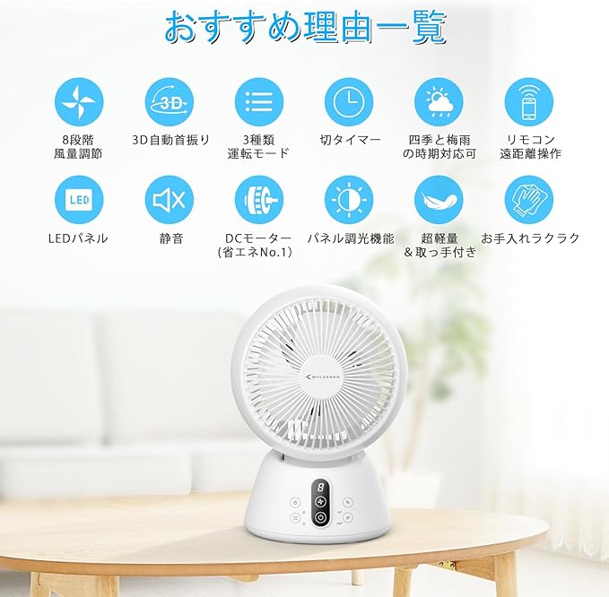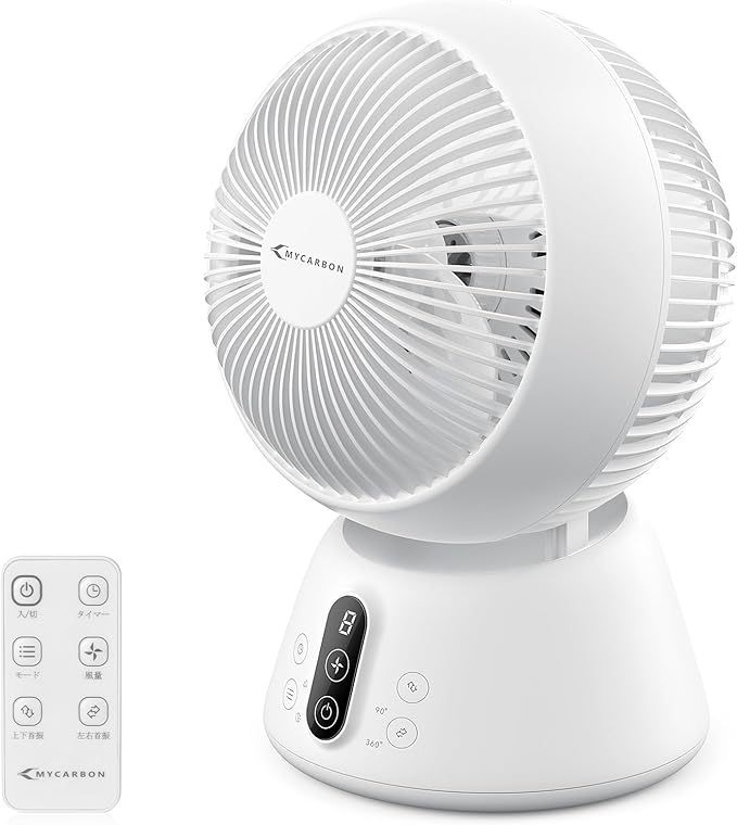 【新登場】MYCARBON サーキュレーター 静音 360 首振り DCモーター 扇風機 分解洗える おしゃれ 自動消灯節 パワフル送風 8段階風量 リモコン付き 9Hタイマー 小型 空気循環 部屋干し 衣類乾燥 梅雨 除湿 兼用 | oioioichan