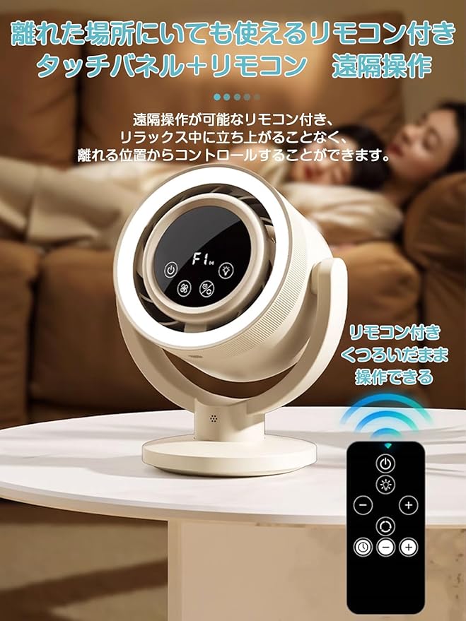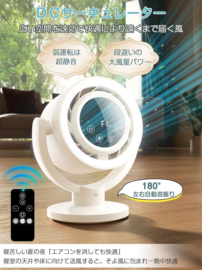 【3D立体首振り&リモコン付&室温表示機能】可動範囲が広く、お部屋の隅々まで心地よい風を届ける事ができます。更に、リモコンで遠隔操作が可能です。離れた場所からラクラク操作。室温をデジタル表示してくれるため、冷えすぎも防げて便利です。