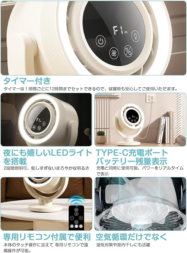 サーキュレーター 【2025年新登場】harulife 静音 DCモーター 扇風機 パワフル送風 省エネ 上下左右首振り 4000mAh 大容量 .内蔵 4段階風量 リモコン付き 小型 空気循環 部屋干し 衣類乾燥 梅雨対策 リビング おしゃれ (グレー) | oioioichan