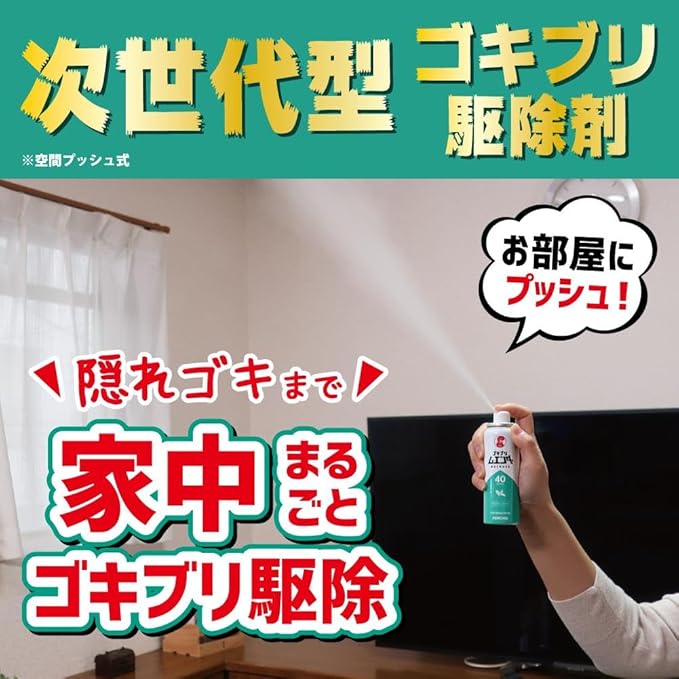 次世代型ゴキブリ駆除剤!※空間プッシュ式。準備・片付け・手間いらず!家中まるごとゴキブリ駆除!広さに合わせた回数を空間にプッシュするだけ!