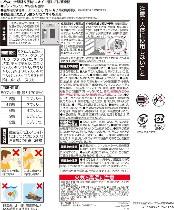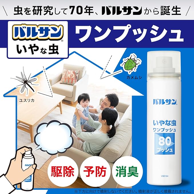 バルサン いやな虫 駆除 & 予防 ワンプッシュ (80プッシュ 最大120畳分) エアゾール / 準備なし 掃除なし / 効果約1ヶ月 / カメムシ ムカデ ヤスデ ゲジ アリ ショウジョウバエ チョウバエ チャタテムシ コクゾウムシ ダンゴムシ ワラジムシ カツオブシムシ シバンムシ コクヌストモドキ メイガ ユスリカ | oioioichan