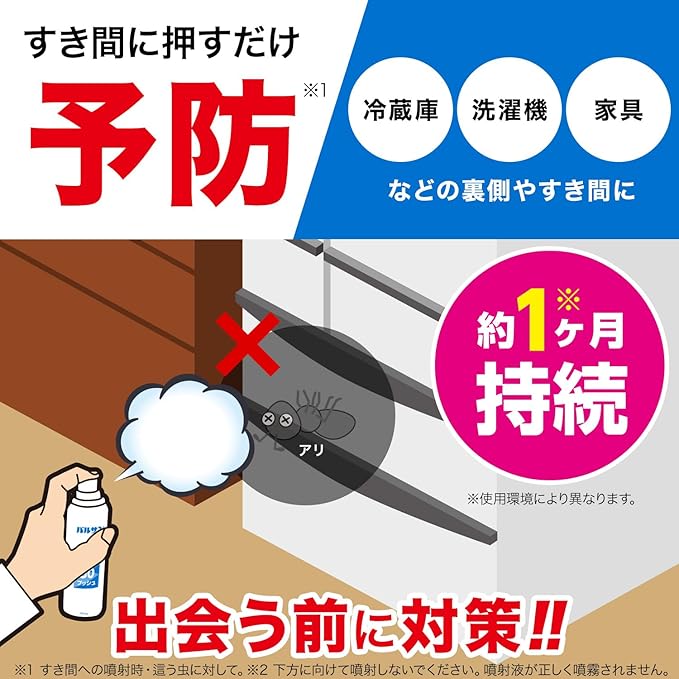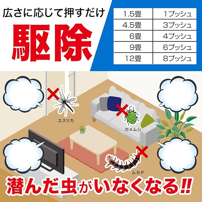 事前準備や掃除は不要です!空間やすき間にシュッとプッシュして駆除&予防