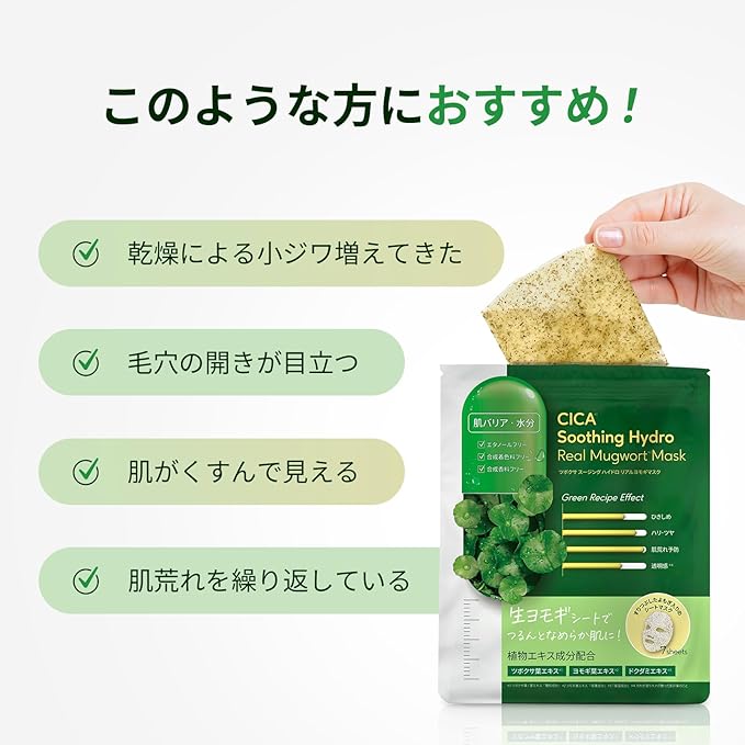 有効成分 ヨモギ葉エキス、ツボクサ葉/茎エキス、ドクキス、マンダリンオレンジ果皮エキス、オリーブ葉エキス、ホホバ葉エキス、メリアアザジラクタ葉エキス、カンゾウ根エキス、ハトムギ種子エキス、アロエベラ葉エキス、ナツメ果実エキス、カワラヨモギ花エキス、オウゴン根エキス、マグワ根皮エキスヨモギ葉エキス、ツボクサ葉/茎エキス、ドクキス、マン… 表示を増やす