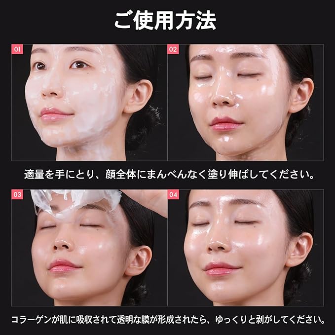 コラーゲンナイトパック: コラーゲンが豊富に含まれており、肌の奥まで栄養を届け、高濃度のコラーゲンで潤いを与えます。リフトアップ効果で翌朝、肌が引き締まります。水分の蒸発を防ぎ、肌の内側に栄養と保湿を浸透させます。