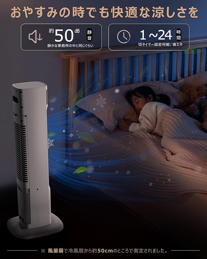 ⏲️【24時間切タイマー 静音】 冷風扇は、ご必要に合わせて、1時間単位で最大24時間オフタイマー設定ができます。設定した時間が経つと自動的に運転を停止します、体が冷えすぎることを防ぎ、夜に安心してぐっすり眠れます。稼働音が静かな事務所の中並みの約50デシベルです。(※ご注意:動作音は風量によって違う場合があります。)