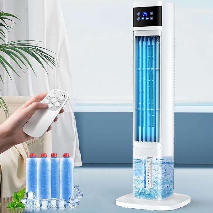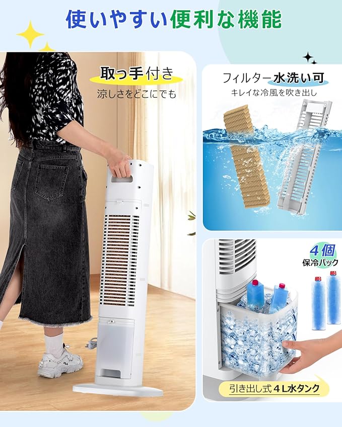Eleeyak 冷風機 強力 冷風扇 【タワー型 4個保冷バッグ】タワーファン 冷風 24時間切タイマー スポットクーラー 冷房 3つモード 3段階風量 LED液晶画面 60 自動首振り タッチ/リモコン操作 4L大容量水タンク 氷入れ ポータブルクーラー スリムファン 静音 冷風扇風機 冷風機 強力 人気 省エネ 家庭用 暑さ 熱中症対策 工事不要 2025年 PSE認証済 日本語説明書 | oioioichan