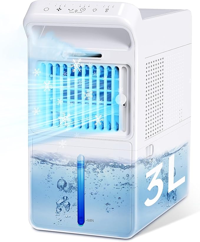 【氷霧・瞬で爆風冷却】冷風機 冷風扇 強力 卓上扇風機 小型 スポットクーラー 卓上クーラー 噴霧機能 瞬间冷却 送風 加湿 冷却 扇風機 風量3段階 3L水タンク ミニクーラー 省エネ 軽量 静音 卓上エアコン 父の日 ギフト 暑さ対策 | oioioichan