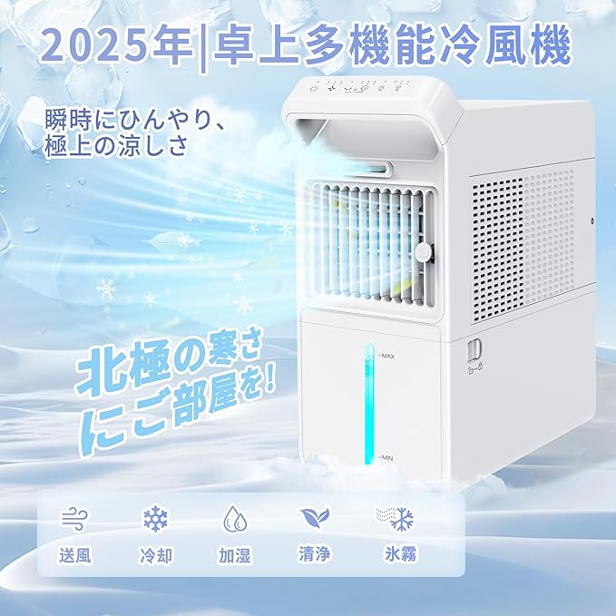 【極光が灯る卓上冷風機|幻想 氷感のダブル冷却】まるで北極のオーロラを閉じ込めたかのような、幻想的なグラデーションLEDを搭載したLEDライト付き卓上冷風機。静かに色が移り変わる「極光」が、寝室・書斎・リビングの雰囲気を一変し、使うたびに癒されるインテリアアクセントに。さらに、氷対応の水冷式冷風扇としても高性能!氷水や保冷剤をタンクに入れれば、最大−15℃のひんやり冷却効果を発揮し、扇風機では物足りない猛暑日にも大活躍。肌に優しく刺さらない“柔らか冷風”で、長時間浴びても疲れにくい設計です。夜はおしゃれナイトライトとしても使えるから、就寝前のリラックスタイムや読書タイムにもぴったり。おしゃれ・涼しい・癒しがひとつになった、これまでにないデザイン家電型冷風扇です。