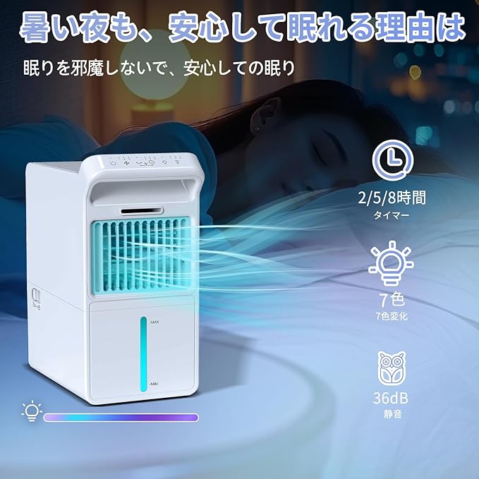 【静音42dB 8時間タイマー|寝室でも赤ちゃんのそばでも安心】動作音はわずか約42dB以下。ささやき声よりも静かな静音冷風扇なので、睡眠中や集中したい作業時にも音が気になりません。赤ちゃんやペットのいる家庭でも安心してお使いいただけます。 さらに、最大8時間のオフタイマー機能付き。就寝前にセットすれば、朝まで快適&消し忘れの心配もなし。省エネにもつながり、毎日の使用にぴったり。光もやさしいナイトライト付きデザインで、夜のリラックスタイムや読書灯としても活躍。音・光・風、すべてが「やさしい」からこそ、寝室や書斎などのプライベート空間での使用にも選ばれています。