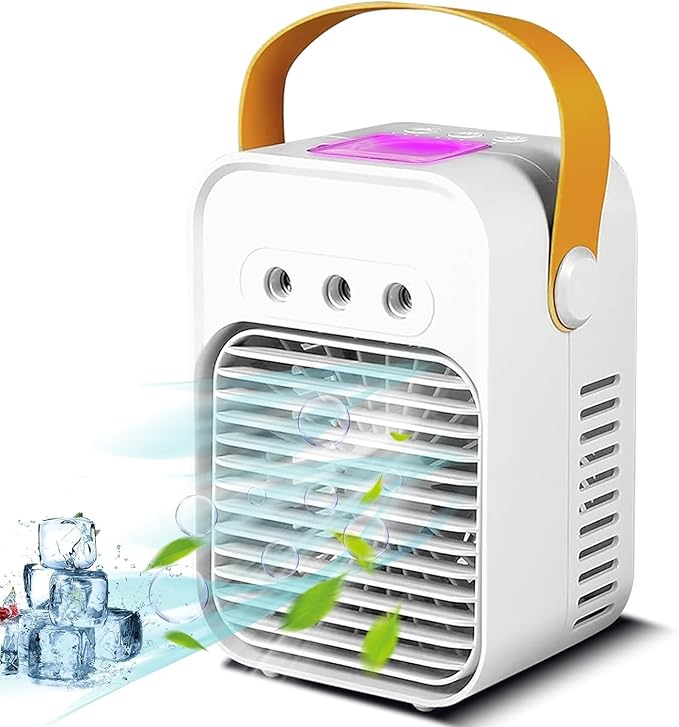 Eleeyak 卓上冷風扇 小型冷風機 USB給電 3段階風量調節 強力 7色ライト付き 卓上クーラー 省エネ 家庭用 暑さ対策