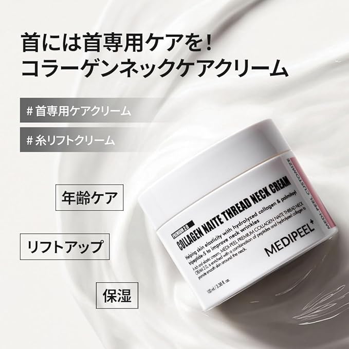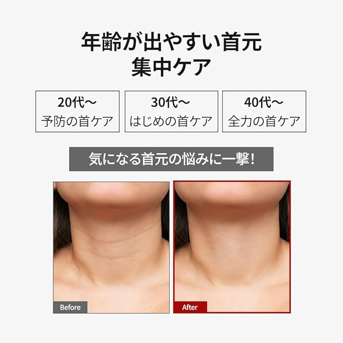 特徴 乾燥によるたるみに役立つ, びよーんと伸びるクリームがシワの細部まで沁みこむのにべたつかない, 糸リフト成分配合で首元の悩みに役立つ, 史上初!首元専用ケアクリーム