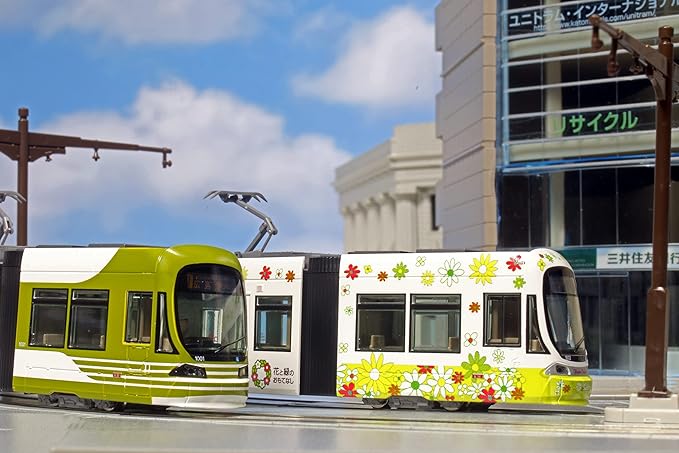 14-804-1 広島電鉄1000形 グリーンムーバーLEX とともに、バラエティに富んだカラーリングの路面電車が活躍する、広島市内の活気あふれる光景をお楽しみいただけます。
