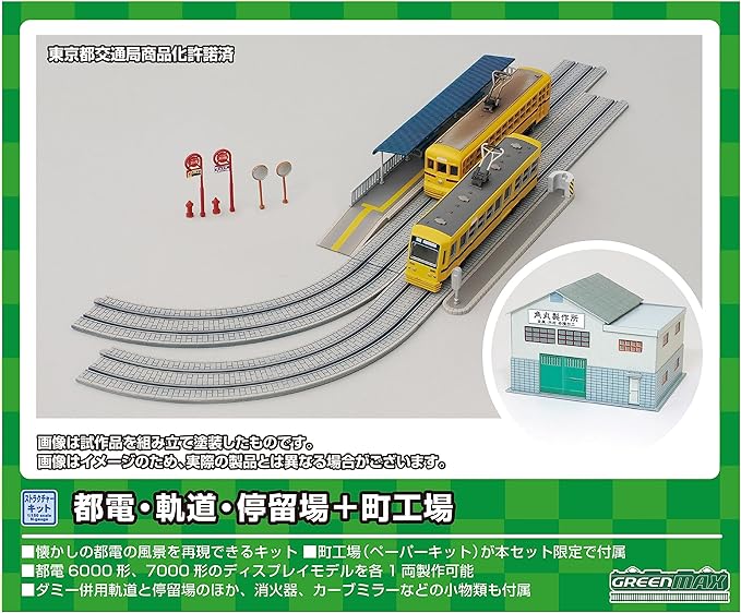 グリーンマックス(Greenmax) Nゲージ 都電・軌道・停留場+町工場 未塗装 未組立 キット 9802 鉄道模型 ストラクチャー