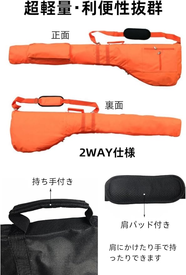 【2WAY仕様】肩にかけたり手で持ったりできます。徒歩や自転車・電車でもラクラク移動ができます。このソフトクラブケース1つで身軽に練習に行けます。重たいキャディーバッグを自宅や練習場から駐車場まで持ち運ぶ必要が無いので、 休日の練習場に気乗りしなかった方や女性の方も気軽に練習に行けます。