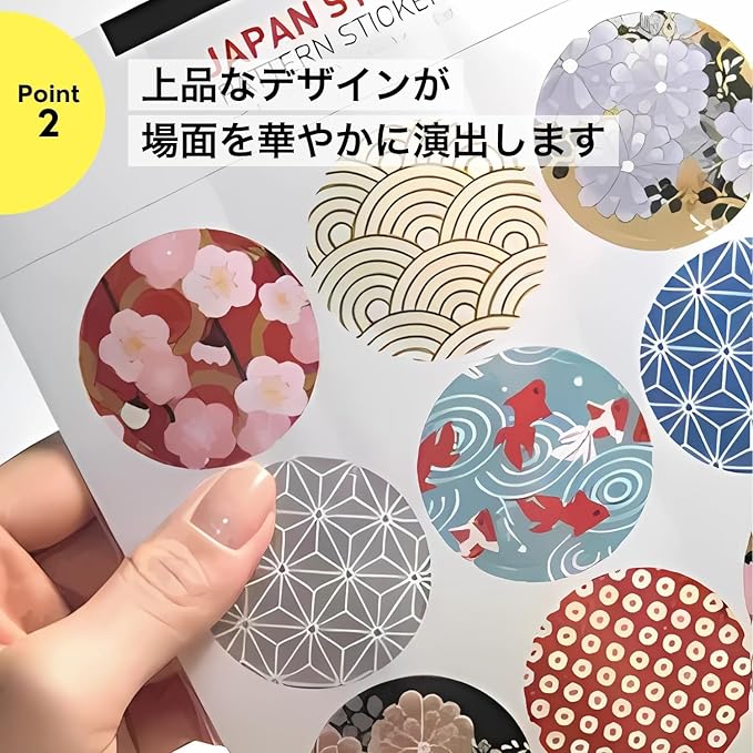 【豊富なステッカーデザイン】A、B、Cは透け感のある透明PVC素材に繊細な金や銀の模様デザイン。Dは紙素材の和の美しさとモダンな上品さが融合したデザインです。