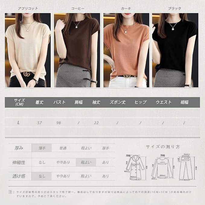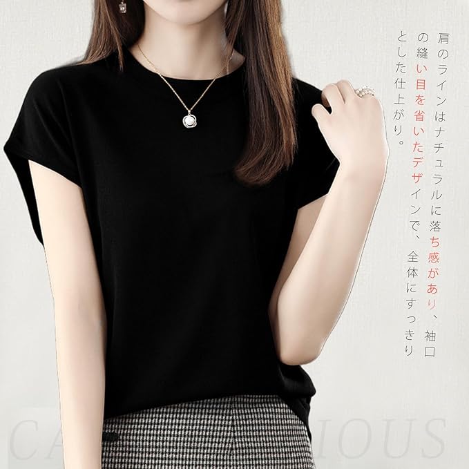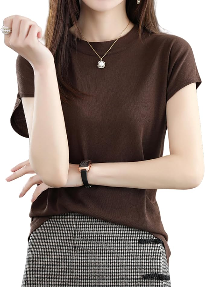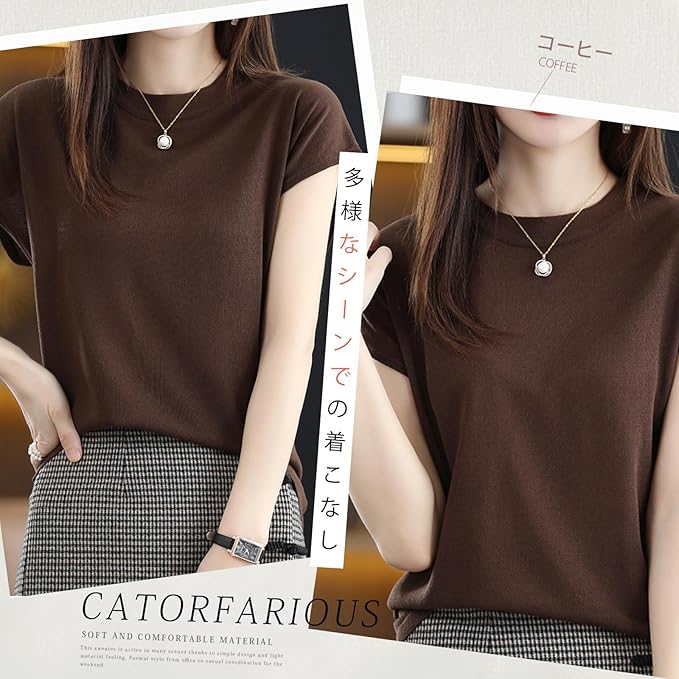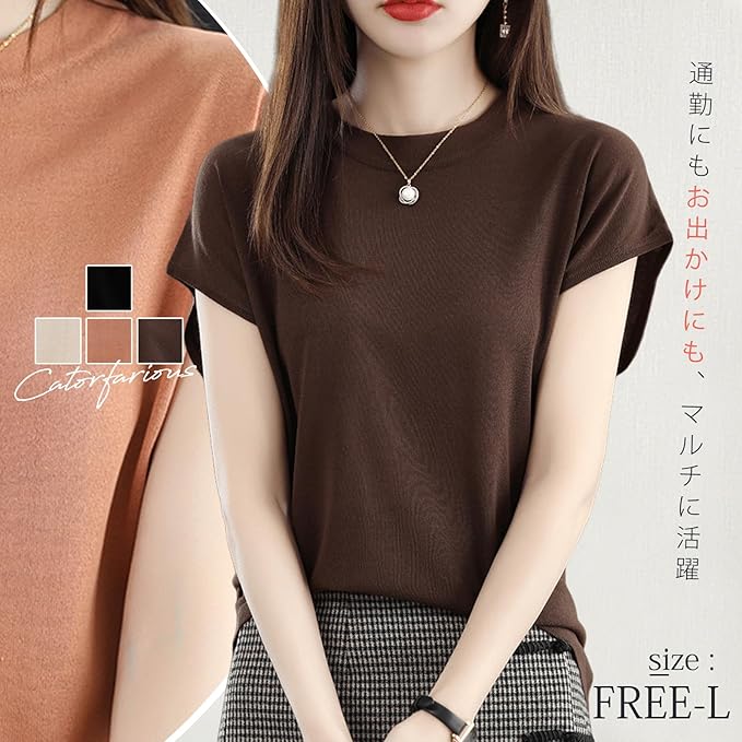 [Catorfarious] サマーニット レディース 丸首 カットソー 半袖 伸縮性 プルオーバー ストレッチ 柔らか 着回し力 シンプル おしゃれ カジュアル 透かし編み 通気 快適 涼しい 通勤 春 夏 | oioioichan