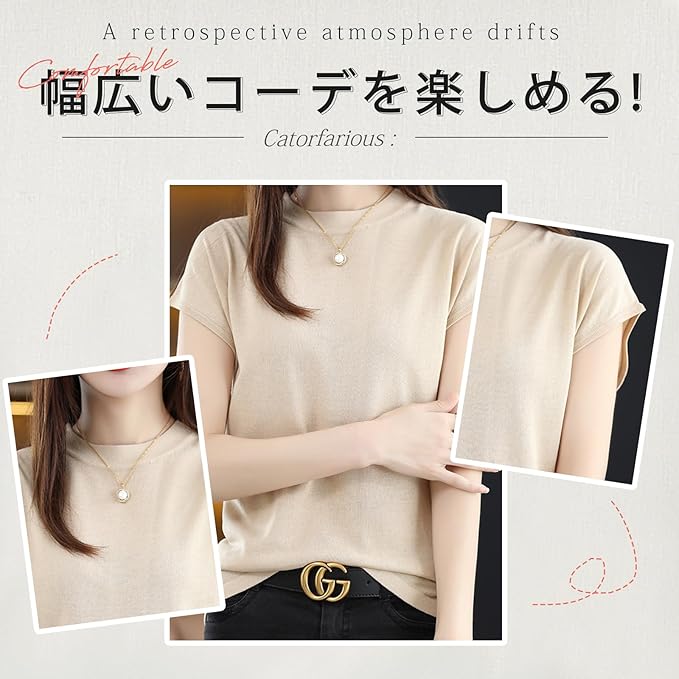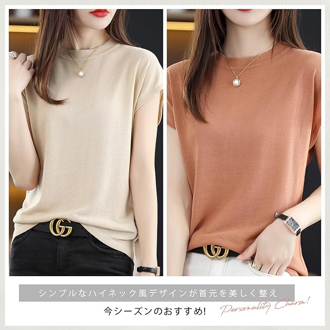 【ひんやり接触冷感素材、快適な着心地が続く】夏にぴったりなアイスシルクニット素材を採用し、シルクのように滑らかでひんやりとした肌触りが魅力。優れた通気性と吸湿性で、汗ばむ季節でも爽やかさをキープ。肌に張り付きにくく、やわらかで程よい伸縮性もあり、長時間の着用でも快適さが持続します。