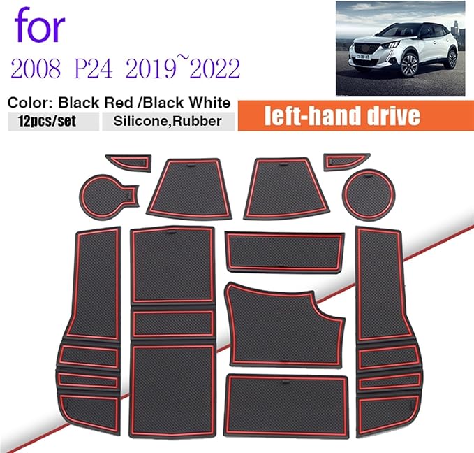 Szwaldaper ドア溝防塵パッド、プジョー用、2008 P24 2019~2022 2020 ゴム製滑り止めマット カップホルダーゲート収納スロット インターオートパーツ 車のドアスロット防塵マット(Red) | oioioichan