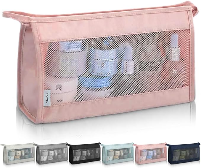 【雑誌掲載!自立して中が見える】トラベルポーチ メッシュポーチトイレタリーポーチ メッシュ 吊り下げ 折りたたみ コンパクト 軽量 化粧ポーチ メイクポーチ メッシュ ポーチ 旅行 RIMINA ピンク | oioioichan