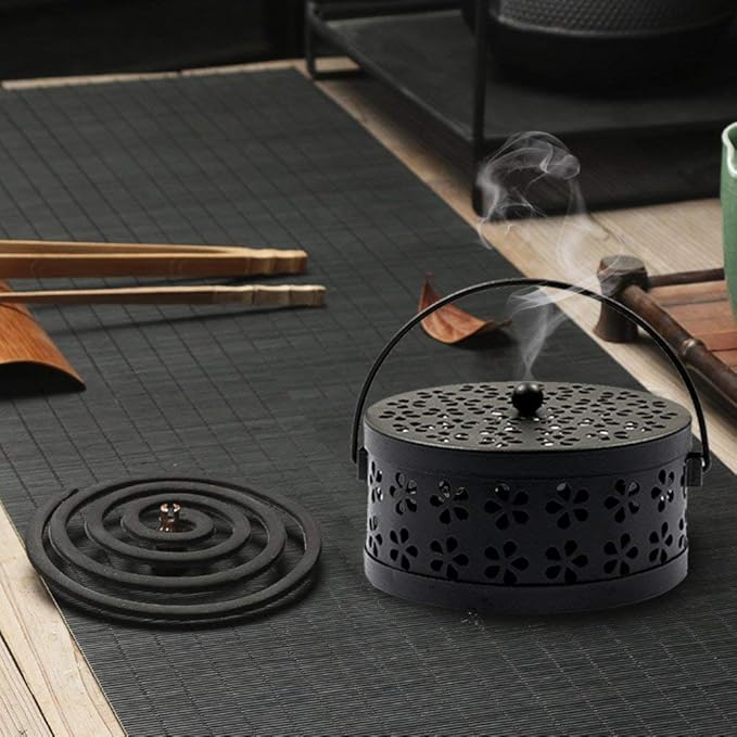 【サイズ】直径約15cm 高さ約7.5cm 【重量】500g 通常サイズの蚊取り線香が収まります。香炉としてもお使いいただけます。お部屋やお庭の雰囲気づくりに最適です。