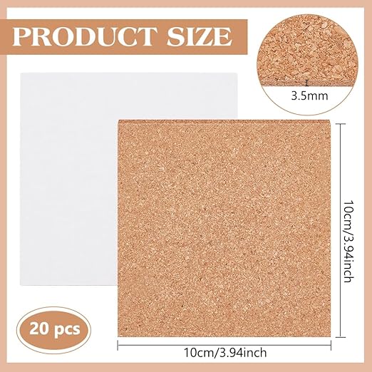 BENECREAT 粘着コルクシート 20枚 コルク板 3.5mm厚さ 10x10cm コルクシート コルクボード 自己粘着 コルクマット 断熱 遮音 滑り止め コースター 掲示板 写真飾り 室内装飾用 ハンドメイド用素材 | oioioichan