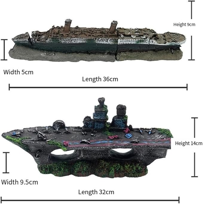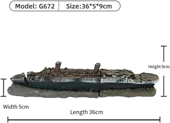 魚の安全のために環境に優しい樹脂素材で作られています。カラフルな景色があなたの魚を作ります。このタイタニック号は、彼らが泳いだり、隠れたり、遊んだりできる自然や生活環境を感じさせる家として機能します。