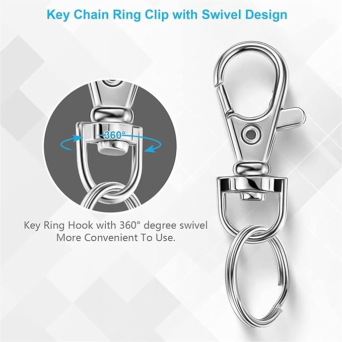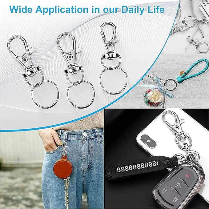 これらの回転フックは、主要なチェーン、ハンドバッグ、財布、犬の襟のために、ストラップを作るなど、さまざまな工芸品の生産に広く使用できます。また、ジュエリー、子供用アート、その他の小さなアイテムを作るのに適しています。