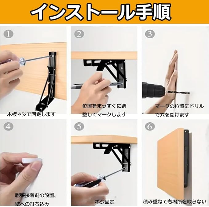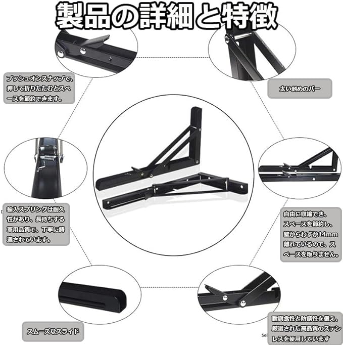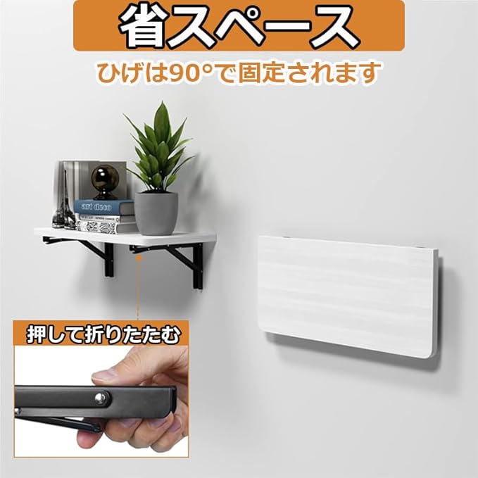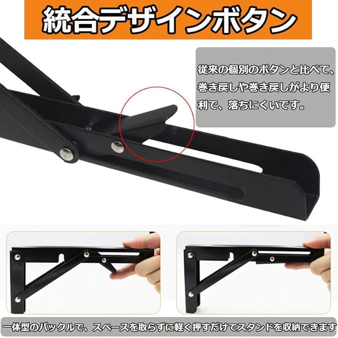 【便利な折りたたみ収納棚】ワンタッチで簡単に折りたたむことができる折りたたみ式ブラケット。使用しないときはコンパクトに収納でき、スペースを節約します。折りたたむ際は少し引っ張りながら作業を行い、ボタンを押すだけで簡単に収納可能です。※指を挟まないよう注意してください。