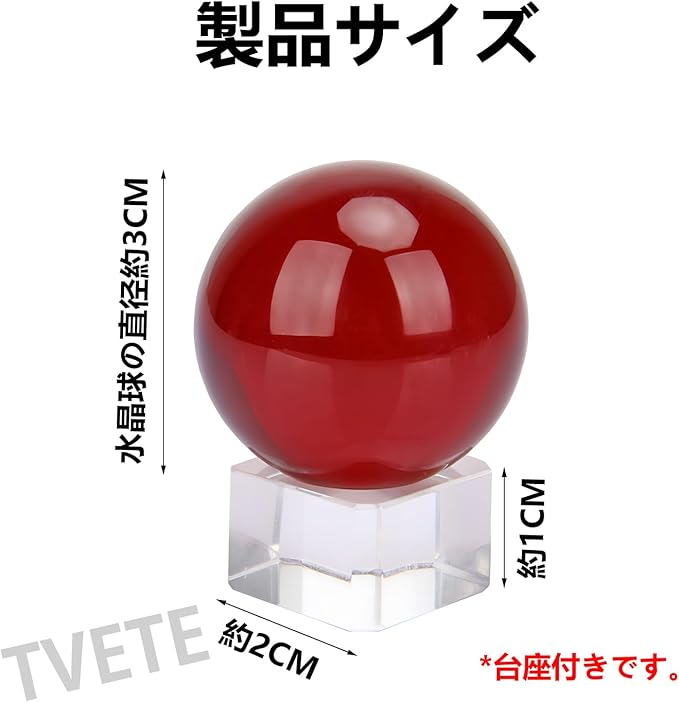 TVETE 水晶玉 クリスタルボール K9 水晶球 クリスタル台座付き 水晶球 飾りボール 人工水晶球 ガラス 丸玉 レッド水晶ボール レンズボール装飾品 風水 開運祈願 仕事運 人間関係 金運 恋愛運 癒し 縁起物 占い球 開運グッズ インテリア 置く物 玄関/事務室/家の装飾 プレゼント (30mm 赤) | oioioichan