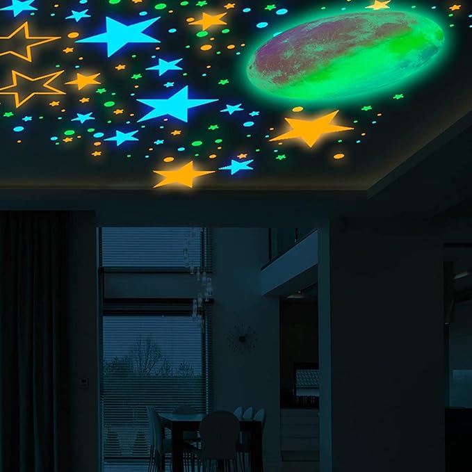 幅広い用途: 寝室、子供部屋、リビングルーム、誕生日、クリスマスパーティーなど、暗闇で光るスターステッカーは完璧です。暗闇で光る天井の星を選択して、異なるインテリアスタイルを演出してください。