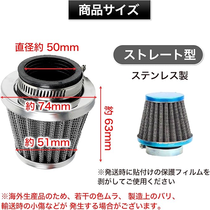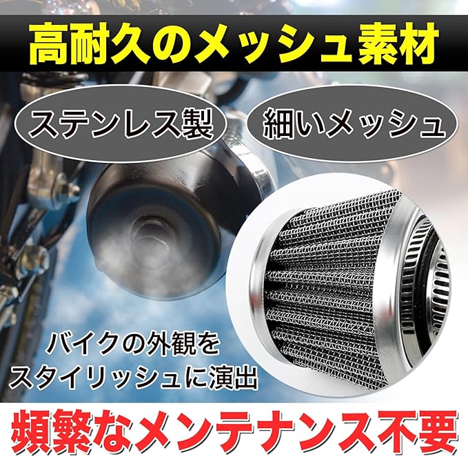 【エンジン保護】エアクリーナーとしての役割を果たし、エンジン内部への異物侵入を防ぎます。これにより、エンジンの故障リスクを低減し、安心して走行を楽しむことができます。※取扱説明書は付属しません。使用方法等に関するサポートは行っておりません。