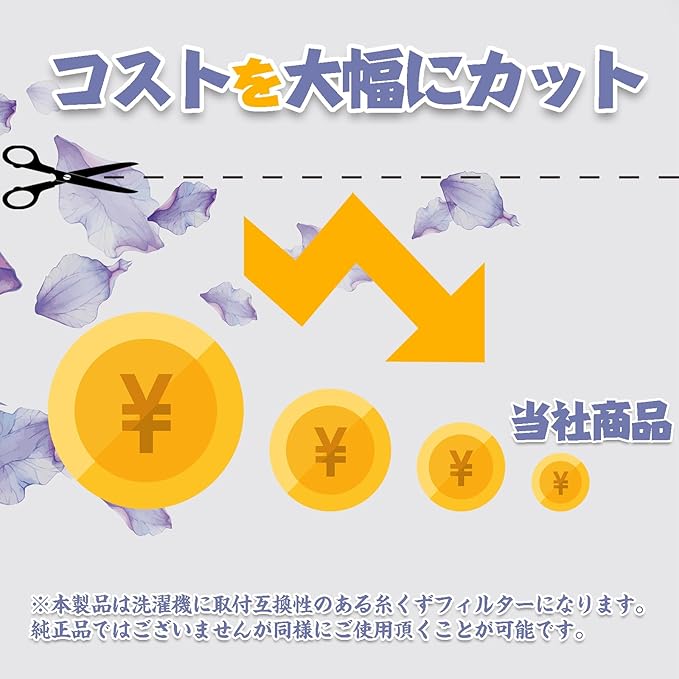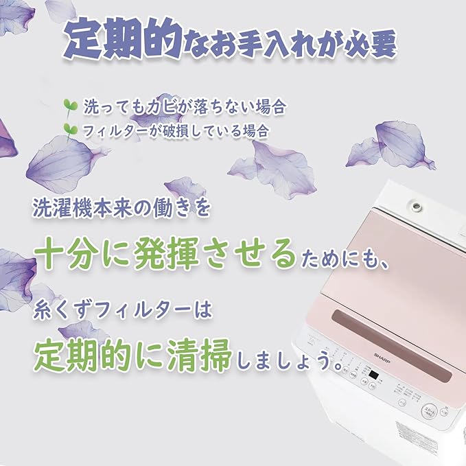 【洗濯機の寿命を延ばす】フィルターが糸くずやゴミをしっかりキャッチすることで、洗濯機内部への負担を軽減。排水口の詰まりやドラムの汚れを防ぎ、洗濯機の寿命を延ばす効果があります。