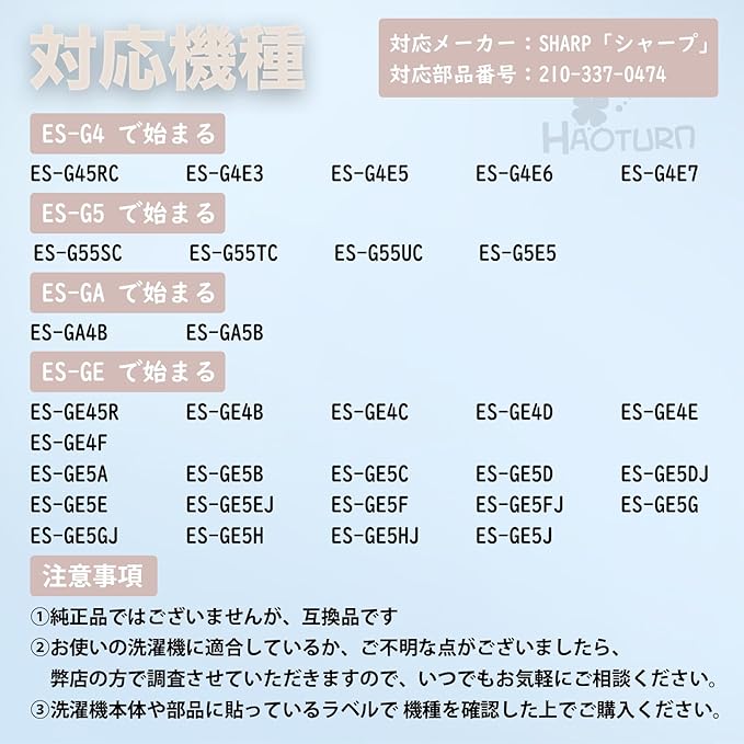【注意事項】①純正品ではございませんが、互換品で、ご了承ください。 シャープ洗濯機本体や部品に貼っているラベルで 機種を確認した上でご購入ください。②パッケージに掲載されていない対応機種につきましても、メーカー公式サイトの情報を元に弊店独自に調査しております。③お使いの洗濯機に適合しているか、ご不明な点がございましたら、弊店の方で調査させていただきますので、お気軽にご相談ください。④対応機種を確認しても、取り付けられない・うまく動けない・使えないお客様は.をお願いいたします。対応させていただきます。⑤生産ロットの違いによって、色や形が若干異なる場合がございますので予めご了承下さい。モニターの発色の具合によって実際のものと色が異なる場合がございますが、ご了承くださいますようお願い申し上げます。