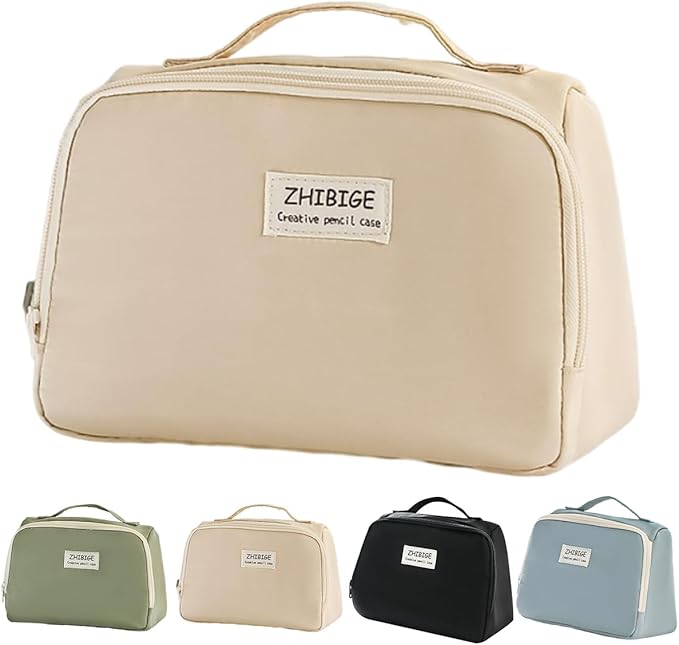ペンケース 大容量 多機能 筆箱 ツールペンケース ペン入れケース 文房具収納ポーチ おしゃれ シンプル 仕切り 立つ 縦 持ち運び 小物収納 小学生 中学生 高校生 大学生 社会人用 誕生日 プレゼント (ベージュ) | oioioichan