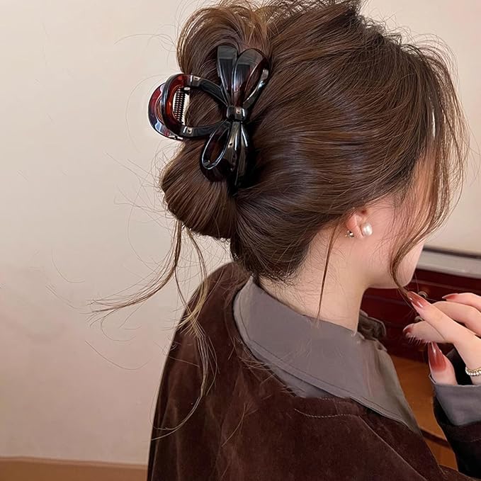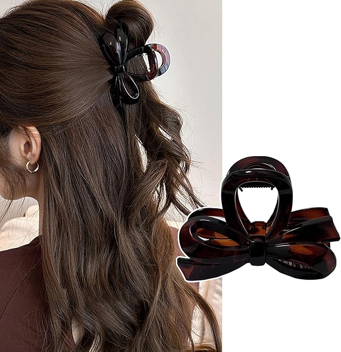 【おしゃれなデザイン】べっ甲風の落ち着いた配色が上品なバンスクリップ。大人のヘアスタイルに馴染むリボンなデザインがこなれた印象へ導いてくれます。韓国、SNSでも大流行のシンプルでオシャレなヘアクリップです。シンプルなデザイン、ファッショナブルなスタイル、髪に輝きを与えます。あらゆる年齢の女性と女の子に最適です。