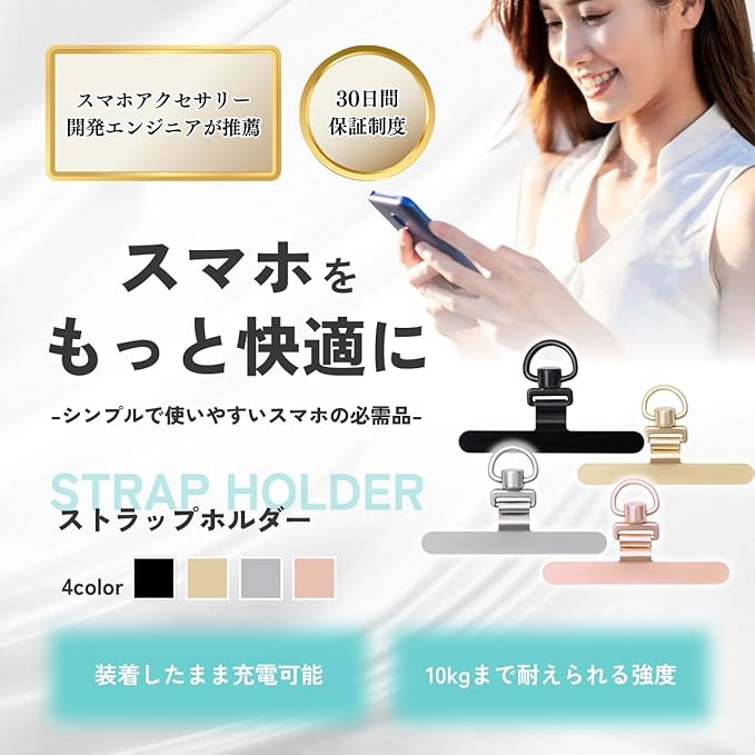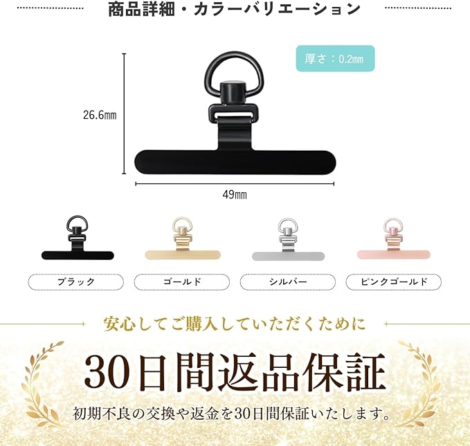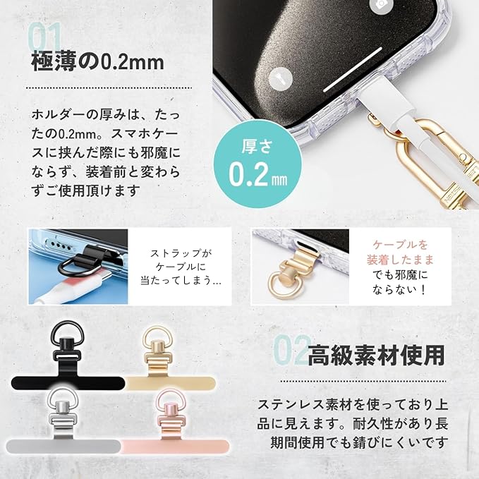 ✅【極薄の0.2mm】スマホストラップホルダーの厚みは、たったの0.2mm。スマホケースに挟んだ際にも邪魔にならず、装着前と変わらずご使用頂けます。