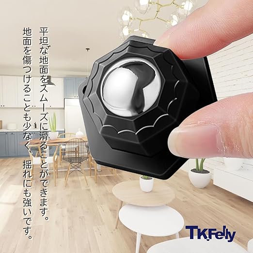【高い耐久性】ボールキャスターは、頑丈なABS素材と小さな鋼球で構成されており、耐久性が高く、摩耗に強い設計です。長時間の使用が可能で、負担をかけることなく重い物を簡単に移動できます。ただし、木製の表面で使用すると跡が残ることがあるため、注意が必要です。