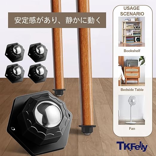 【商品】ボールキャスターのボールはスチール製で、方向を気にせず自由に移動できます。ボールキャスターは安定感があり、静かに動き、平坦な地面をスムーズに滑ることができます。また、地面を傷つけることも少なく、揺れにも強いです。一方、家電用ホイールは硬く、濡れた地面には適していますが、重い物が木製の床を傷めないように使用は避けることをお勧めします。