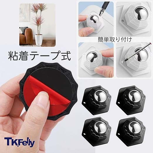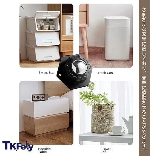 【移動が楽】粘着テープ式のボールキャスターは、物入れやゴミ箱、ベッドサイドキャビネット、植木鉢など、さまざまな家具に適しており、簡単に移動させることができます。ミニキャスターはアイテムの底に取り付けることができ、外観を損なうことなく、実用的な選択肢です。カーペットには適しておりませんのでご注意ください。