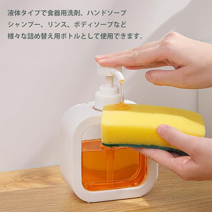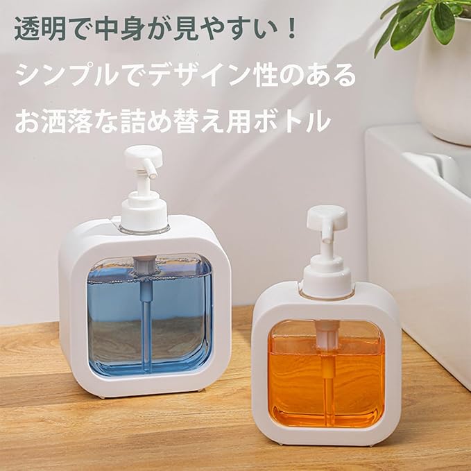 液体洗剤や、などの詰め替えに便利なボトルです。透明なボディなので中身が一目で分かり、残量の確認が簡単。ポンプ式で使いやすく、キッチンやバスルームなどさまざまな場所で活躍します。シンプルかつスタイリッシュなデザインがインテリアに馴染み、300mlと500mlの容量が選べるため、用途に合わせて使えます。詰め替えもスムーズで、衛生的に液体を保管できます。