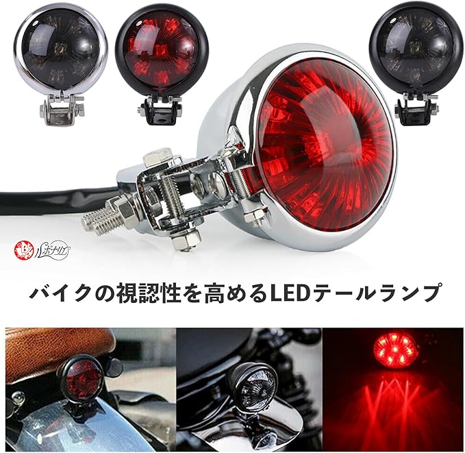 明るく鮮明な光で、夜間や悪天候時でもバイクの視認性を高めるLEDテールランプです。4カラーをご用意いたしましたので、お好みに合わせてお選びください。