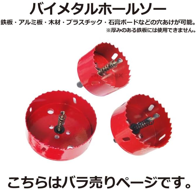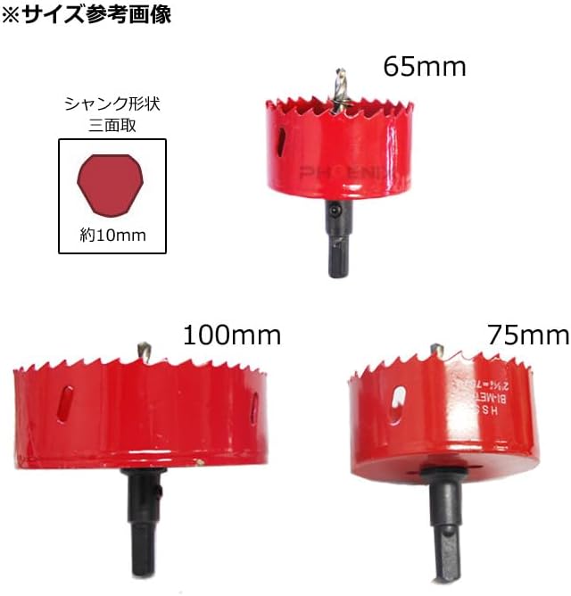 PHOENIX ホールソー バイメタルホールソー ホルソー ホールカッター 鉄板 など 穴あけ 先端工具 先端ドリル 工具 切断工具 65mm / 75mm / 100mm ばら売り 1個 65mm,レッド | oioioichan