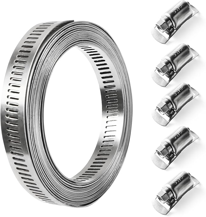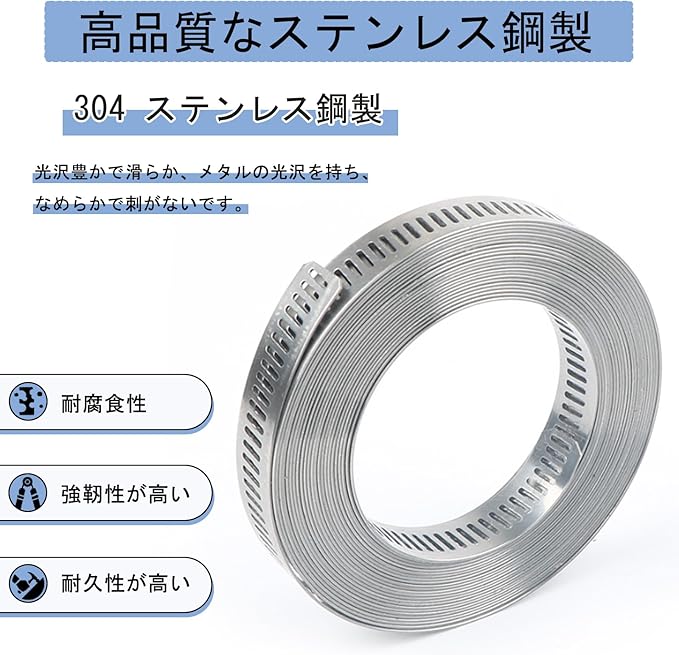 Aicosineg ホースバンド 304ステンレスバンド 長さ 2m 幅さ12.7mm 留め具 5個 バイクパーツ マフラーバンド 固定バンド 水道管 園芸 調整可能 強力固定 | oioioichan