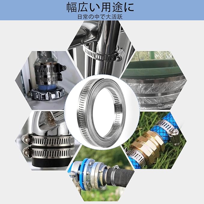 【幅広い用途】調整可能なホースクランプは、車、ボート、バイクなど多岐にわたる用途に適用。家庭、工場、庭園など、幅広いシーンで利用可能で、設置も簡単且つ安全です。