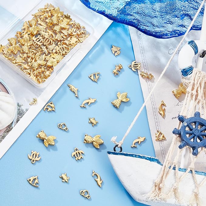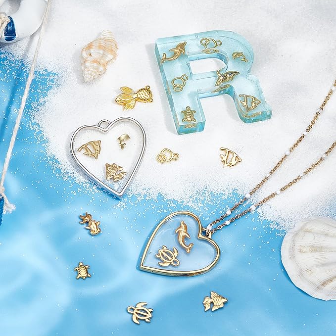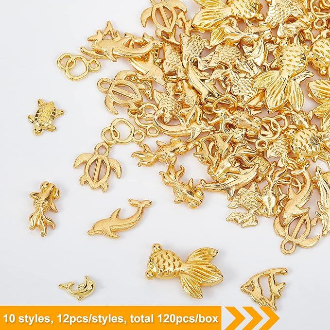 120個 レジン封入物 メタルパーツ 海洋動物 亀 金魚 パーツ 封入素材 合金UVレジン デコパーツ ネックレス ネイル用 DIY ハンドメイド パーツ アクセサリーパーツ 手作り ゴールド | oioioichan