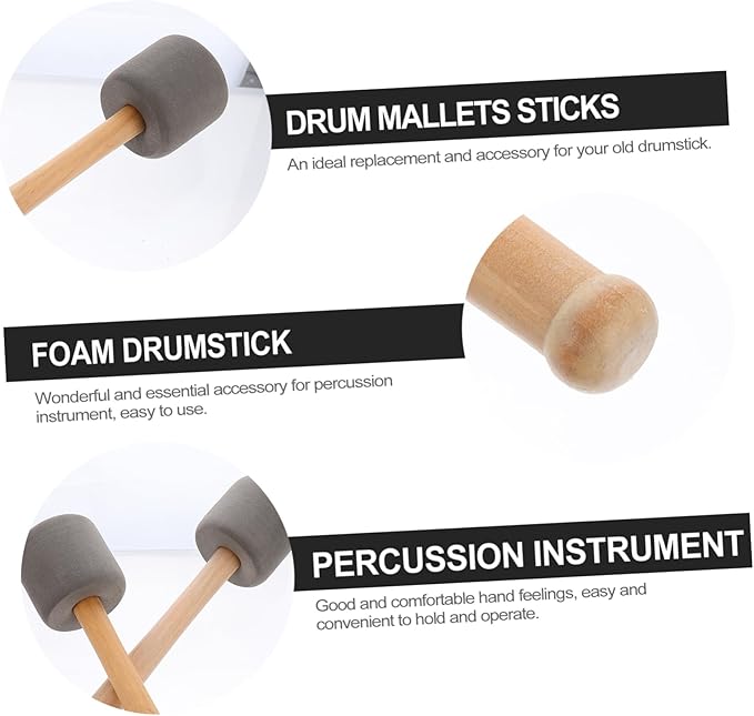バスドラム用ドラムスティック - マレットスティックの木製ハンドル、耐久性があり頑丈、割れにくい、タンバー