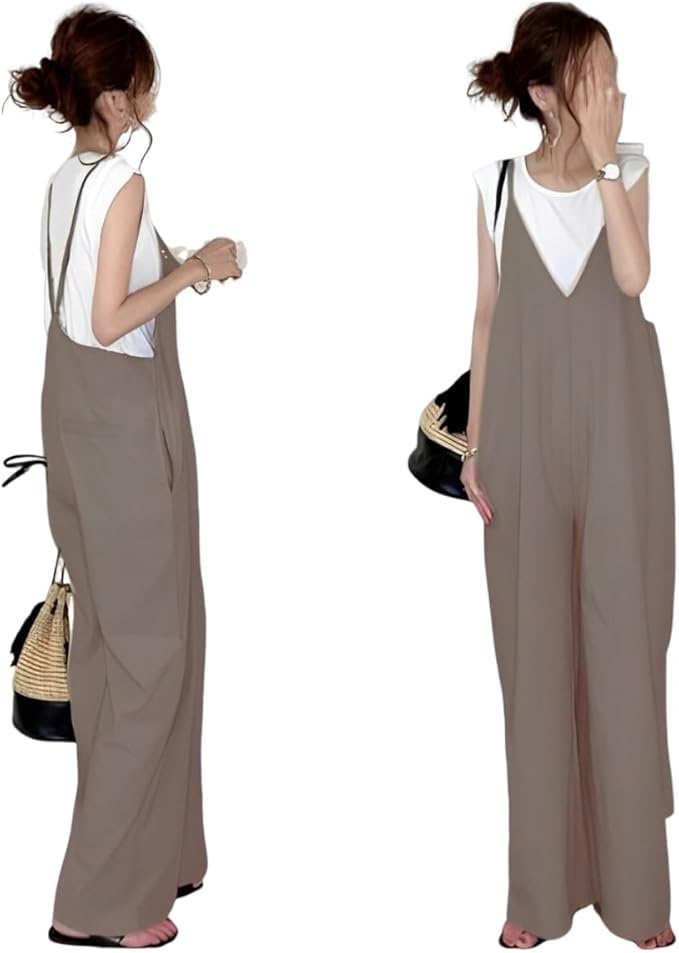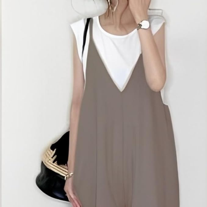 オシャレな女性にぴったりのサロペットが登場しました!このキャミサロペットは、Vネックデザインが女性らしさを引き立て、着痩せ効果も抜群。ゆったりとしたシルエットが体型をしっかりカバーし、どんな体型の方にもぴったりフィットします。肩紐でサイズ調節ができるフリーサイズ仕様なので、マタニティ中の女性にもおすすめ◎