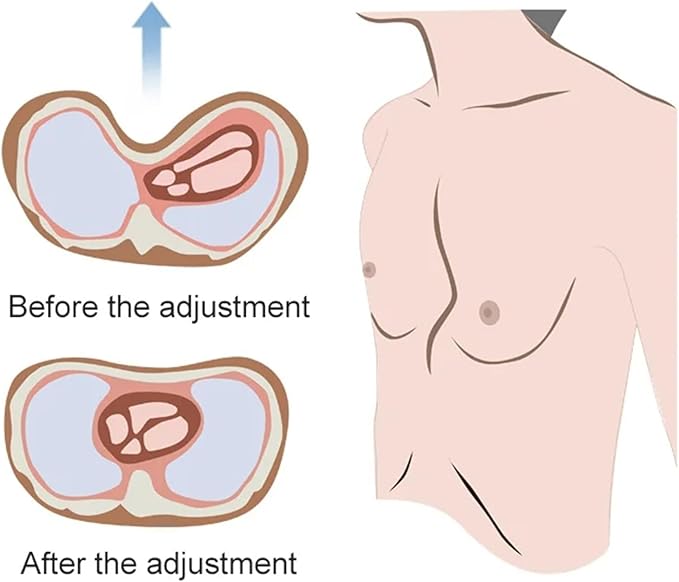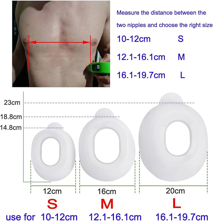 【胸郭陥凹装具】胸郭陥凹、胸骨陥没、胸郭陥没などの胸骨変形の改善に使用します。サイズS/10-12.1cm、サイズM/12.1-16.1cm、サイズL/16.1-19.7cm。2つの乳首の間の距離を測定します。