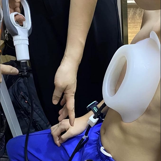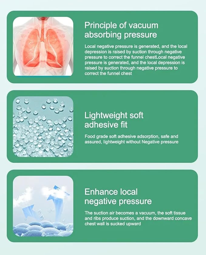 【治療原理】 安全な理学療法です。局所的な陰圧により、陥没した胸骨に穏やかで持続的な外向きの力を加え、胸骨を正常な状態に戻します。