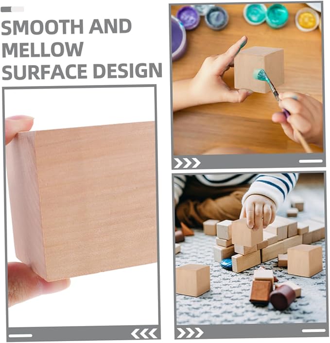 木製ブロック - 衝撃耐性に強く、変形や割れが起こりにくい木製素材、工芸品用の木製立方体。